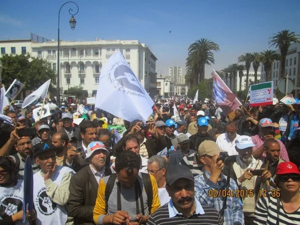 تحت شعار “نضال وحدوي مستمر لمواجهة الهجوم على الحريات ومكتسبات وحقوق الشغيلة”، نظم الاتحاد النقابي للموظفين/ات يوم الخميس 2 أبريل 2015 إضرابا وطنيا على مستوى قطاعات الوظيفة العمومية والجماعات المحلية وبعض المؤسسات العمومية مع مسيرة وطنية بالرباط. وقد دعم التوجه الديموقراطي داخل الاتحاد المغربي للشغل هذه الحركة النضالية الوطنية بدعوته لمجمل القطاعات العمالية ــ خاصة العمال الزراعيين ــ والمعطلين/ات للمشاركة فيها.